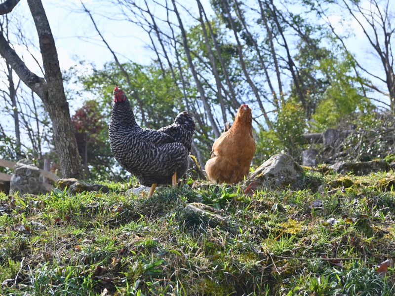 鶏たちの美しい羽根、美味しい卵は、だしパックのおかげかもしれませんね。