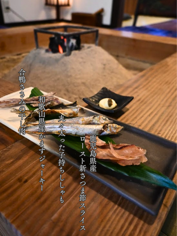 囲炉裏で軽く炙ることで、香ばしさと風味がより引き立ちます。