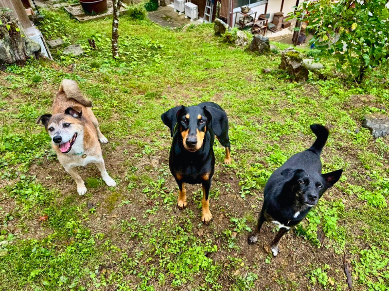 超ビビりの保護犬たちも、いろりの森の静かな環境ではリラックスして過ごしています。
